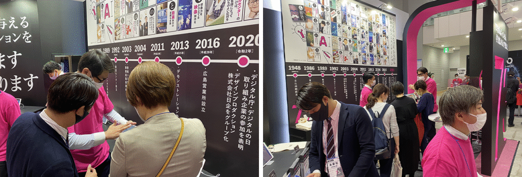 弊社ブースのキャッチコピーにある通り、創業73年の信頼と実績に基づき、なおかつ、お客様に寄り添って、感動を与えるプロモーションを創り上げていくお手伝いをさせていただきます。
