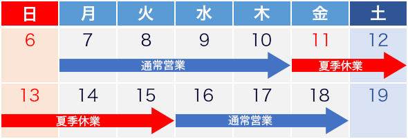 2023年8月11日(金)~2023年8月15日(火)までコールセンター業務におきましては、上記期間中も通常どおり営業いたします。