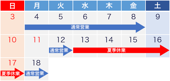 2025年8月13日(水)~2025年8月17日(日)までコールセンター業務におきましては、上記期間中も通常どおり営業いたします。