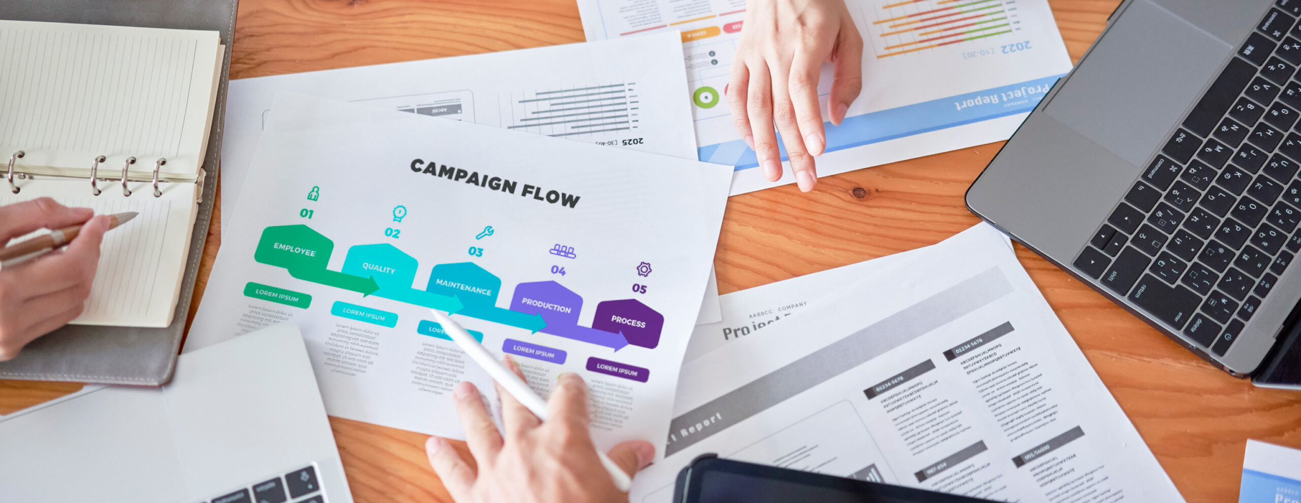 印刷物、ノベルティ、什器など、プロモーションに必要となる販促ツールを具現化。アートディレクターによるクリエイティブ提案にとどまらず、外部パートナーと連携してさまざまな成果物をご提供します。時代と共に変化するニーズに合わせて、高品質な成果物を柔軟にアウトプット。印刷を祖業とする私たちが誇るソリューションです。