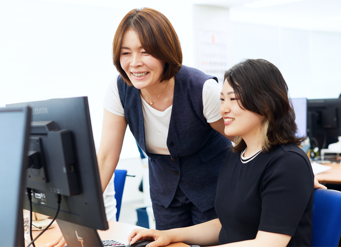 私が面接をするときは「自ら考え、行動できる人」なのかを見るようにしています。そういう人は何かしら人生の目標を持っているもので、目標があれば人はそれに向かって自ら考えて一歩ずつ取り組んでいきます。目標はオン・オフどちらでもいいのですが、最近思うのはプライベートを充実させることが仕事への意欲につながるということです。なぜならプライベートでの興味や情熱が、仕事における発想力や粘り強さ、モチベーションにつながることが多いように思えるからです。私のプライベートといえば、今、子育ての真っ最中で、大変ですが楽しみながら奮闘する毎日です。私は営業職で入社し、出産・育休を経て、現在は部長職としてチームを率いています。仕事と子育て、どちらも全力で取り組めるのは、公私ともに充実しているからに他なりません。もちろん、その両立には家族の深い理解と協力が不可欠です。そして、社員一人ひとりのキャリアと人生を尊重してくれる会社の風土も、私の大きな支えになっています。家族という土台と、会社の理解。この両輪があるからこそ、今の私があるのだと感謝しています。